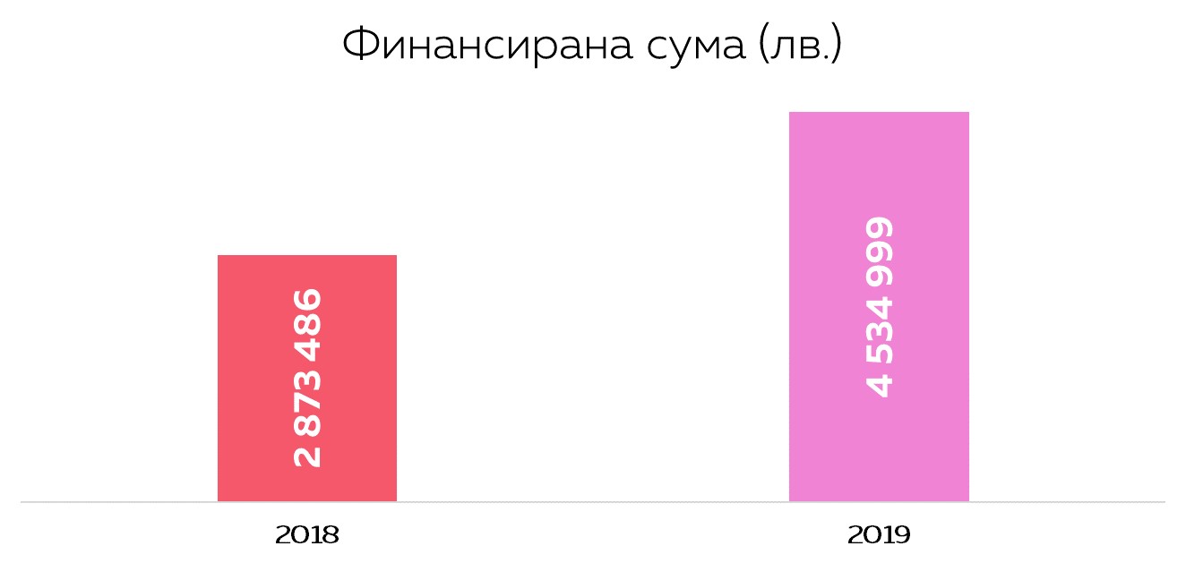 2019 г. наистина беше много добра година, като сумата на отпуснатите нови кредити е с 58% по-висока от 2018 г.