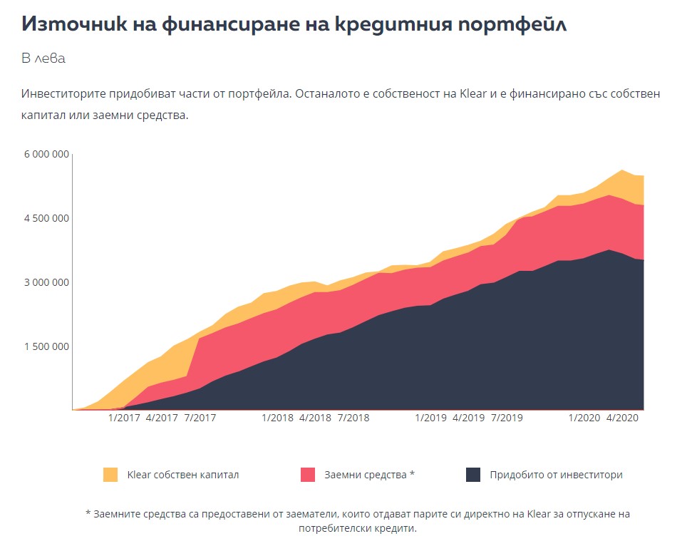 В модела на Klear първо се финансират кредитите, а после ги продаваме на пазара, където инвеститорите купуват части от тях. Ето защо са ни необходими парични средства, за да се покрием разликата от този период от време.