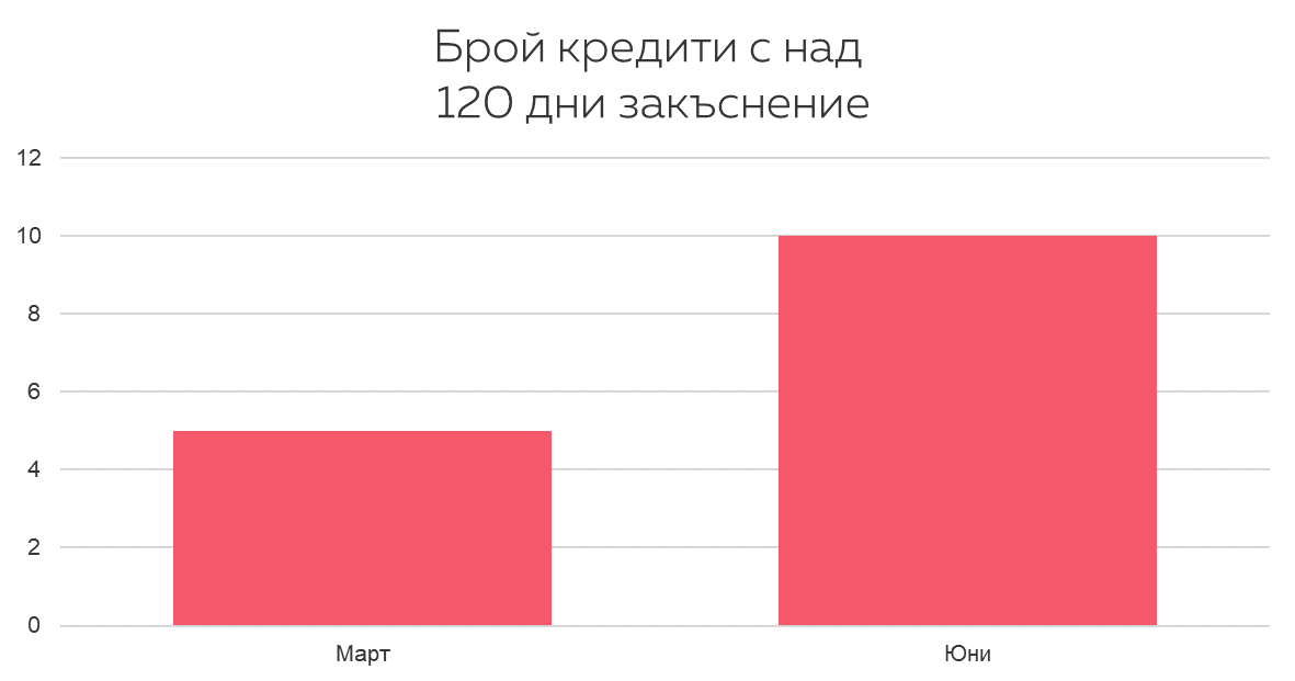 Броят на кредитите с повече от 120 дни се е увеличил с 5. Вероятно няма да ги продадем много скоро, тъй като пазарът на лоши кредити не е подходящ.