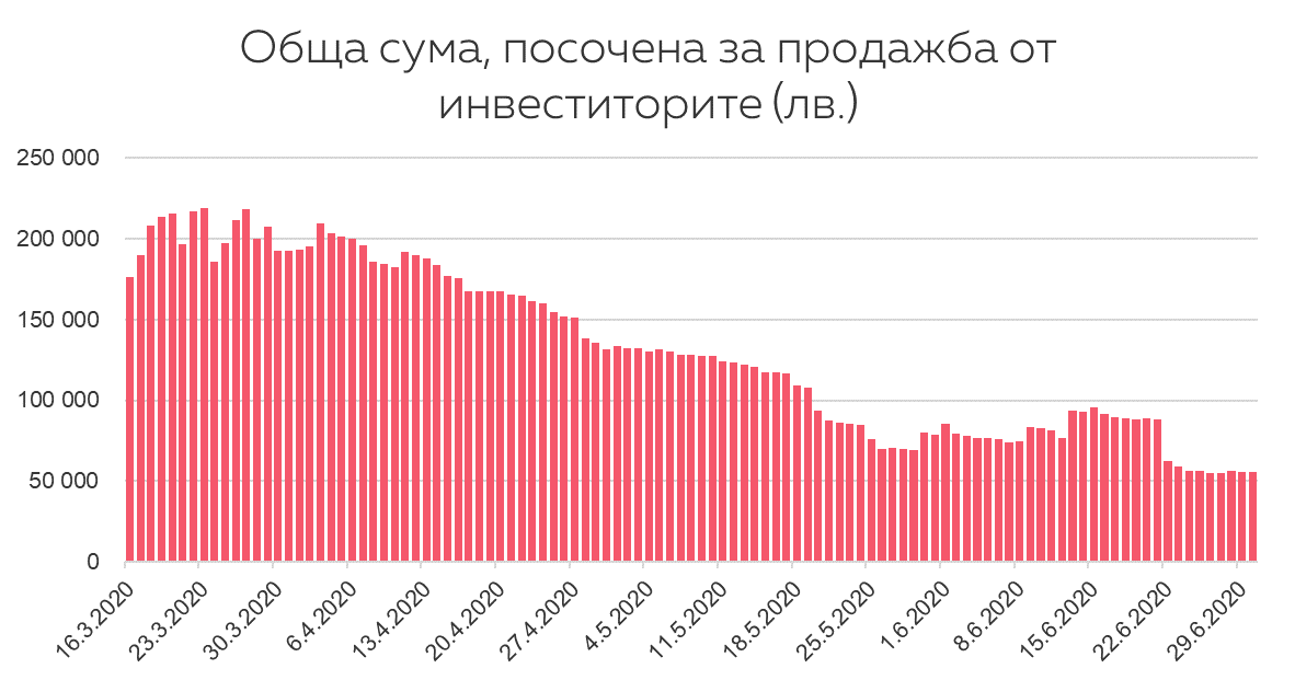 Наплива достигна своя връх в края на март и след това прогресивно намаля, тъй като инвеститорите имаха възможност да продават, макар и с по-бавни темпове от преди. Сумата, посочена за продажба сега, се връща към нивата преди COVID.