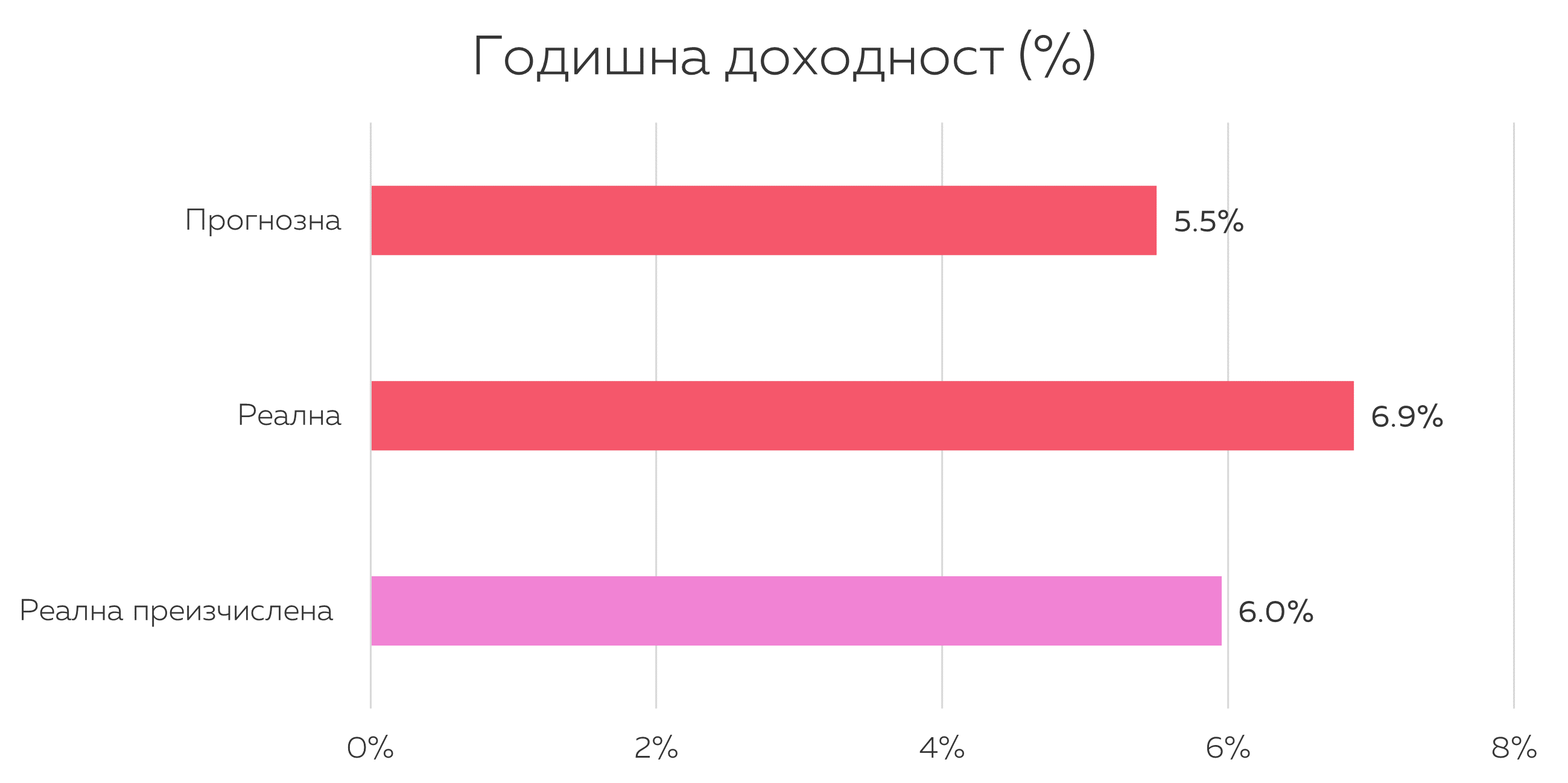 Преизчислените възвръщаемости са предимно вариращи между 5% и 8%.