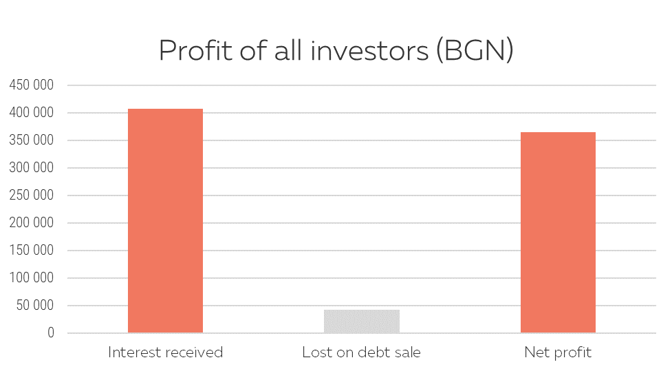 The generated profit from the whole portfolio is above 400 K BGN. There is no change in the loss from bad loans as the next debt sale has not yet been closed. For the last 6 months, the total received interest has increased with 150 K BGN.