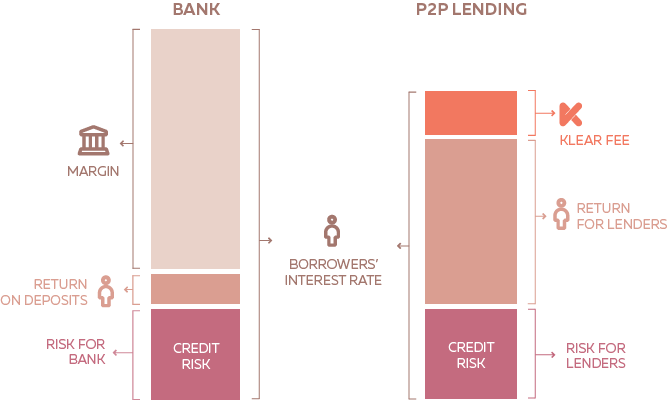 On a platform, there is no such incentive to overcharge one side of the ecosystem at the expense of the other. By definition, a P2P lending platform is bound to find the fair balance between investors and borrowers.