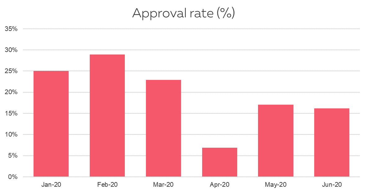 The volume of early repayments dropped significantly, although rebounding in June. On one hand, probably less exceptional revenues were received, or people preferred to keep this extra money received as a reserve for the uncertain future. The other probable reason is that fewer borrowers consolidated their existing loan with a new one.