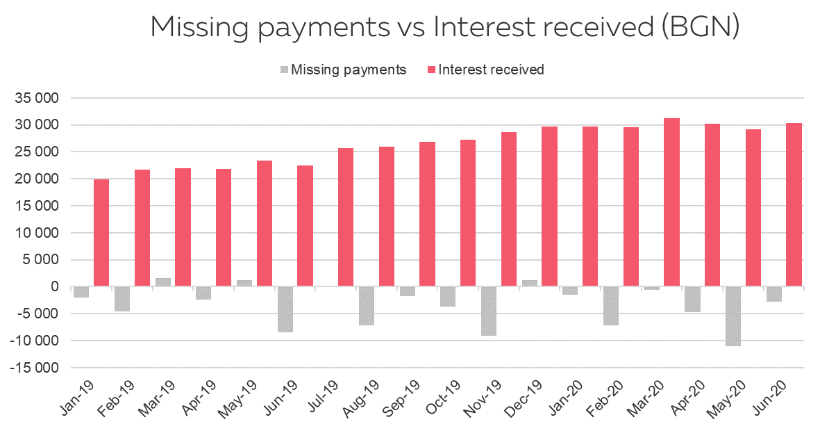 During the last 3 months, the interest received covered way more than the missing payments, which verifies the key assumption of the P2P lending model.