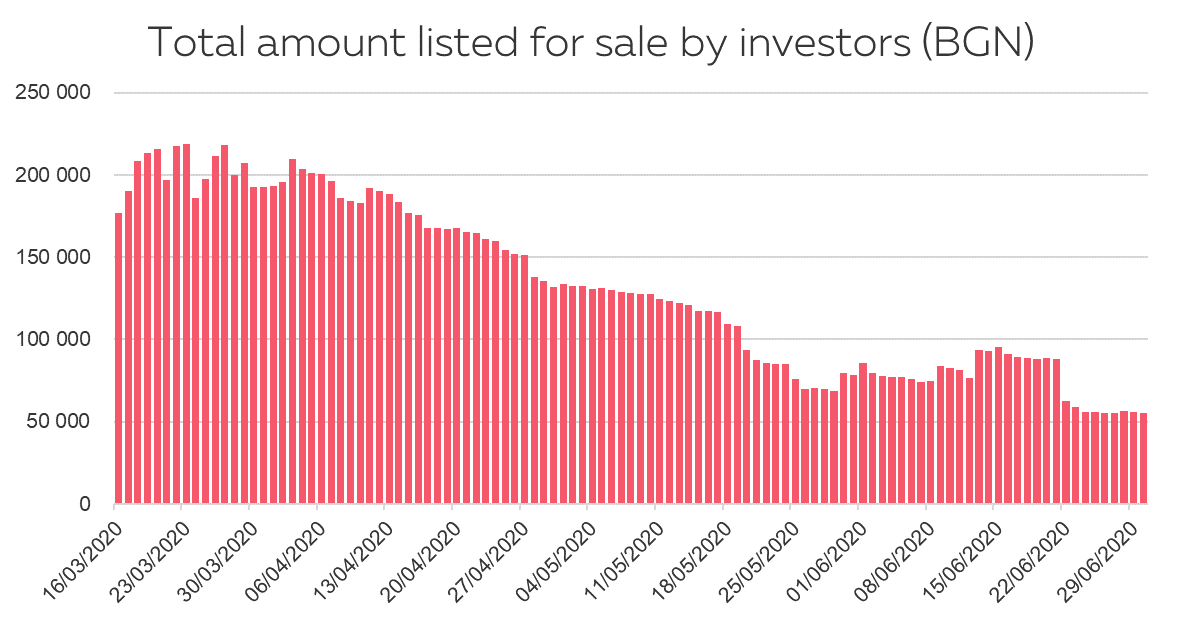 The surge peaked at the end of March and then progressively decreased as investors were able to sell, although at a slower pace than before. The amount listed now is back to the levels pre-COVID.