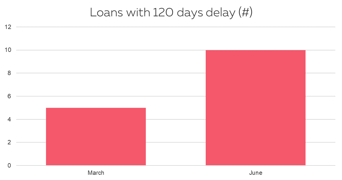 During the last period, the rate of postponement logically increased to help borrowers with a temporary decrease in revenues. The level remains however at a low absolute value.