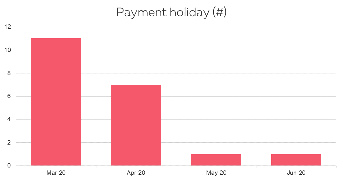 We had invited borrowers who anticipate difficulties to contact us in advance. A 1-month payment holiday has been agreed on a few difficult situations. A 1-month payment holiday means that the whole amount of the installment which was supposed to be paid during this month is postponed at the end of the credit.